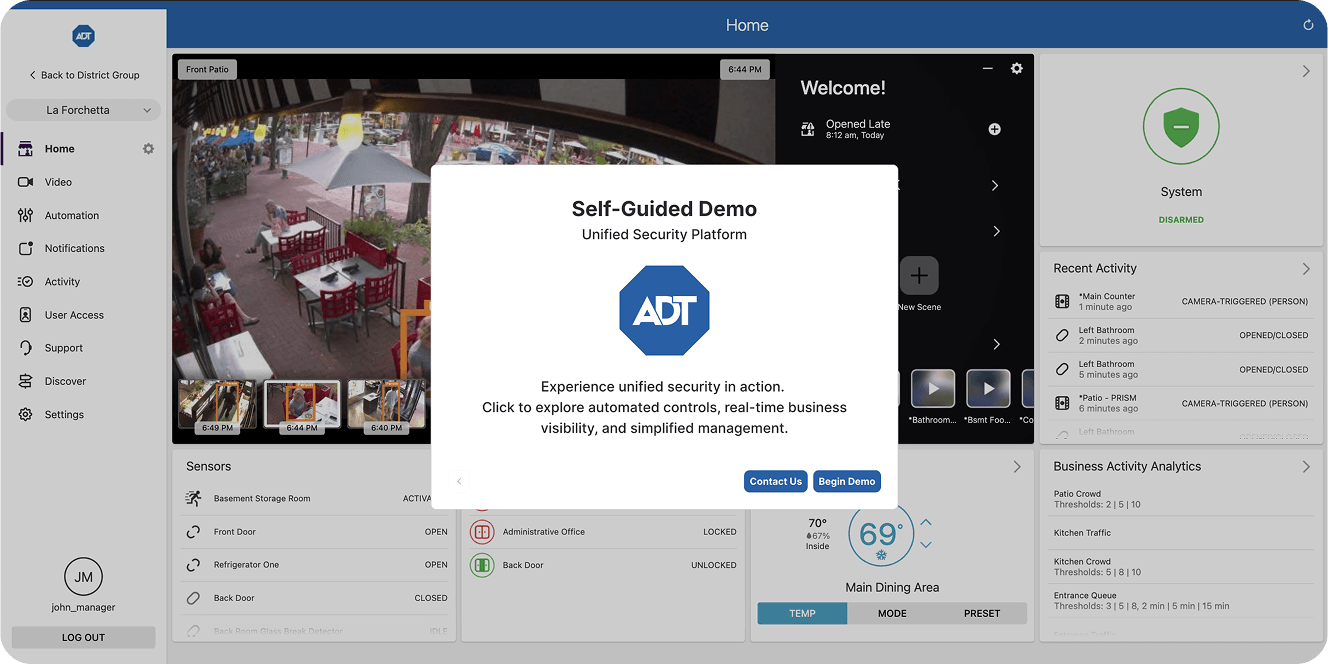 ADT grows with your business. Our multi-site capabilities allow you to monitor the status of individual or multiple locations, view recent activity, and control security settings across your entire network.