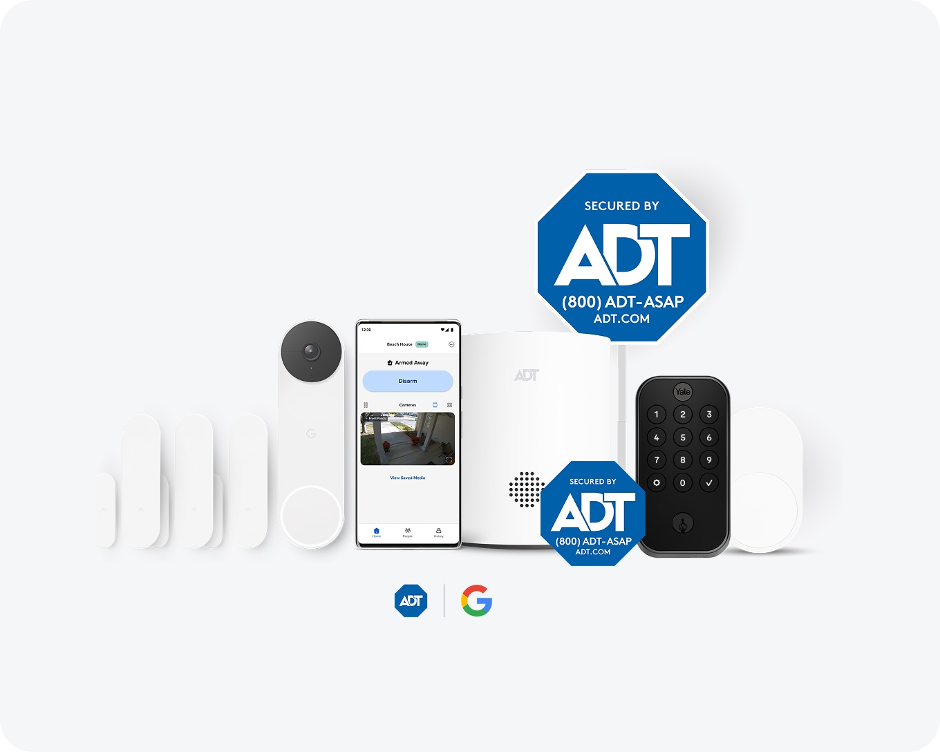 ADT systems feature intelligent Google Nest products to make your home safer and smarter, inside and out.