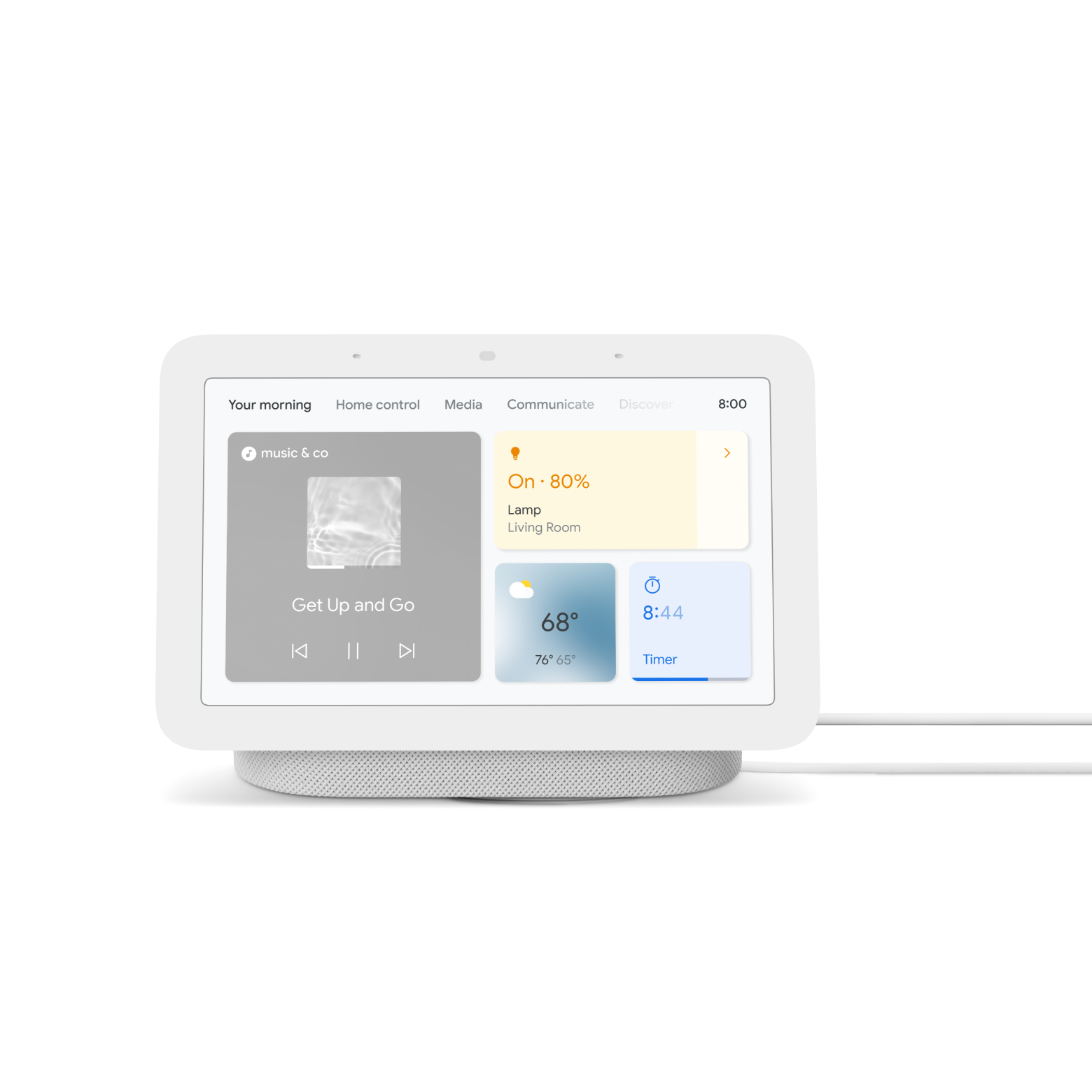 Gracias a su pantalla táctil de 7', el Nest Hub (2.ª generación) puede mantenerlo entretenido con programas, videos y música. Y permite controlar sus dispositivos inteligentes compatibles con un toque o con su voz.