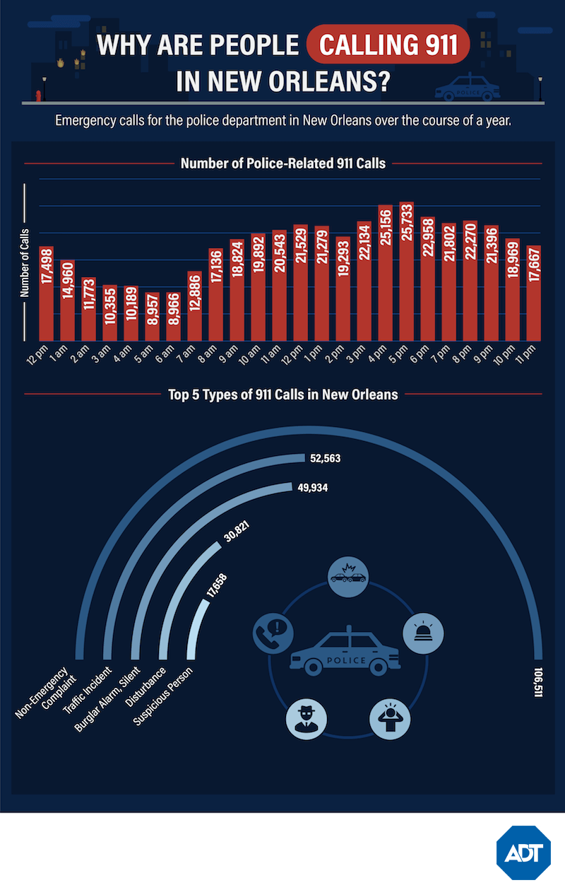 In New Orleans, the 4 and 5 o’clock evening hours are dangerous ones, with significantly more 911 calls than most other times of day.