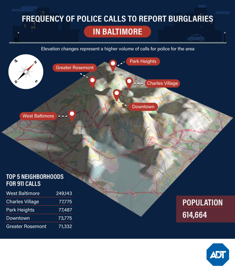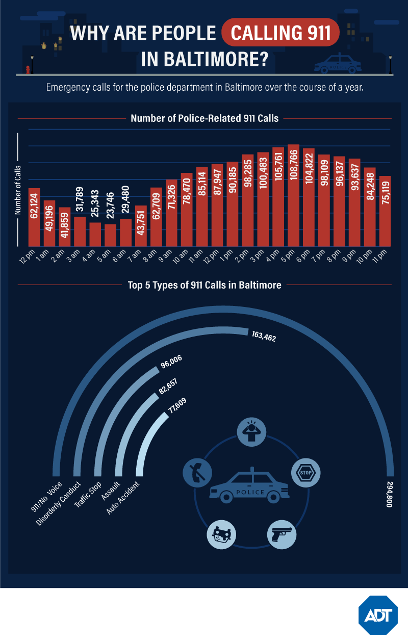 Baltimore’s crime rates are some of the highest in the country, and the violent crime is more than three times as high as Maryland’s average. Offenses like burglaries and other property crimes top 30,000 incidents in Baltimore annually. Baltimore’s other common call-ins include assault and disorderly conduct. And while no voice calls may sound harmless, these occur when operators can’t hear the caller who may be attempting to report a robbery or other dangerous situation.
