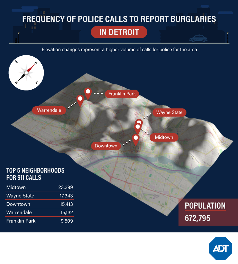 Though it has some peaks and valleys, Detroit’s burglary rates are fairly high across the board. It is often known as the most dangerous city in America due to high violent crime rates, and unfortunately, it seems to be a dangerous one for homeowners as well.