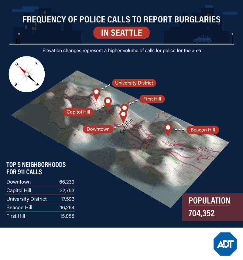 When it comes to burglaries, those 911 calls are concentrated in some specific areas. According to recent Seattle police plans, neighborhoods with higher burglary rates include Ballard North, Ballard South, Bitter Lake, Capitol Hill, Downtown Commercial, Fremont, Lake City, Northgate, Queen Anne, Roosevelt/Ravenna, and Sand Point. To help people learn more about the various neighborhoods, the Seattle city government has created an online crime map to inform residents of what’s going on as well as people that are thinking of moving there.